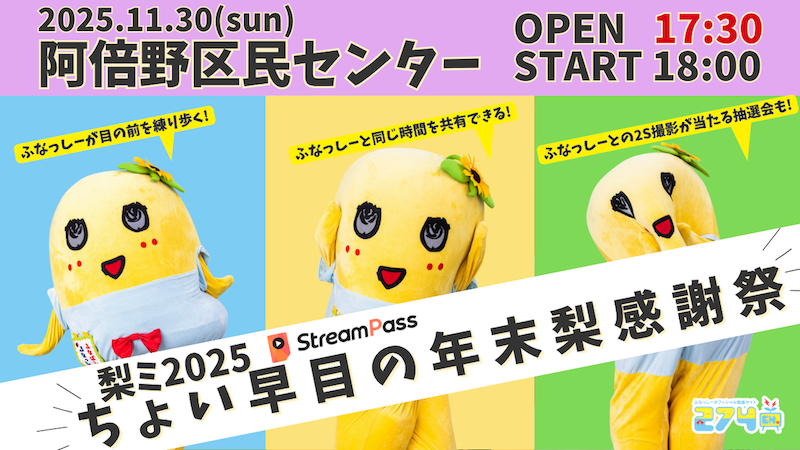 【11/30 18:00~】ふなっしー/274ch.プレゼンツ「梨ミ2025 ちょい早目の年末梨感謝祭 in大阪」
